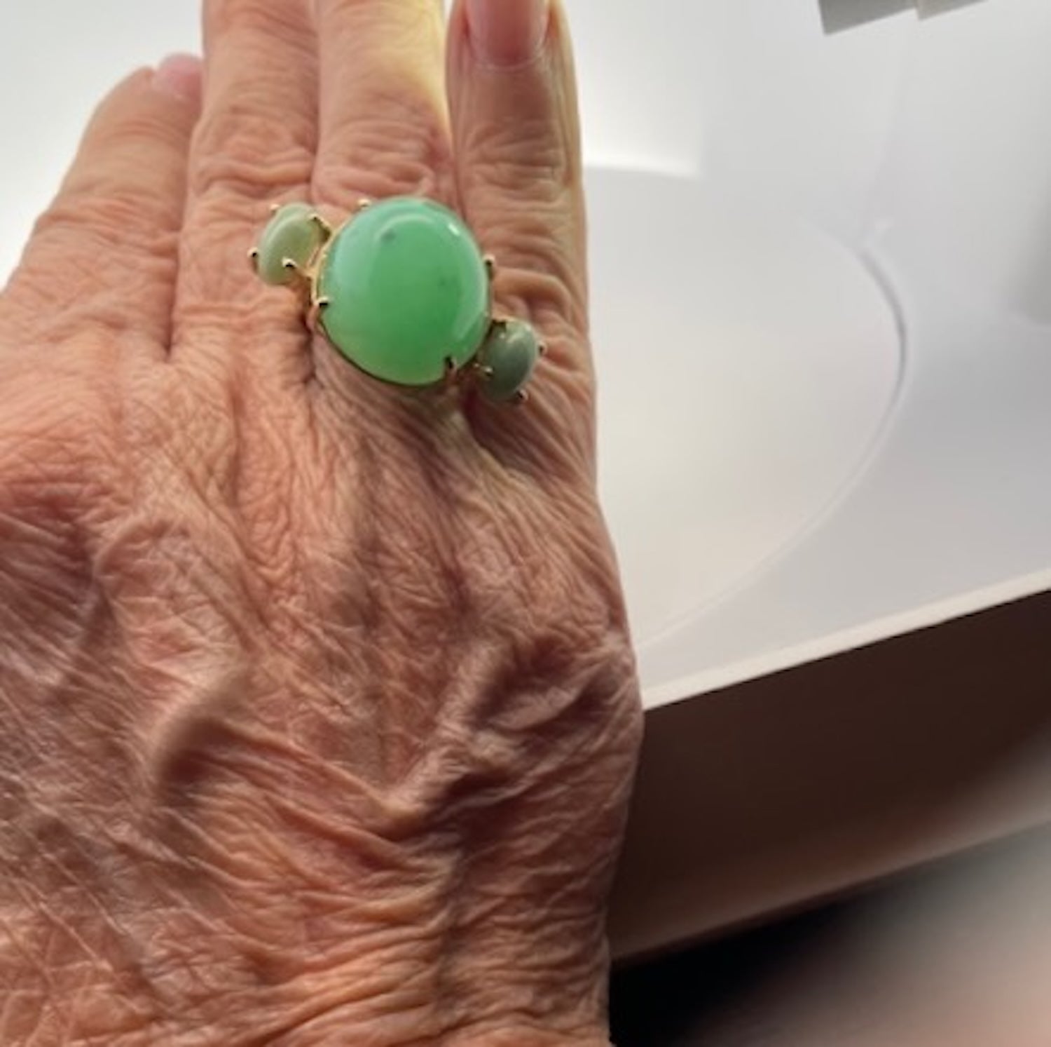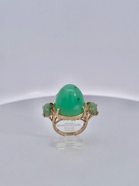 18K Bullet Chrysophase and Jade 3 Stone Ring