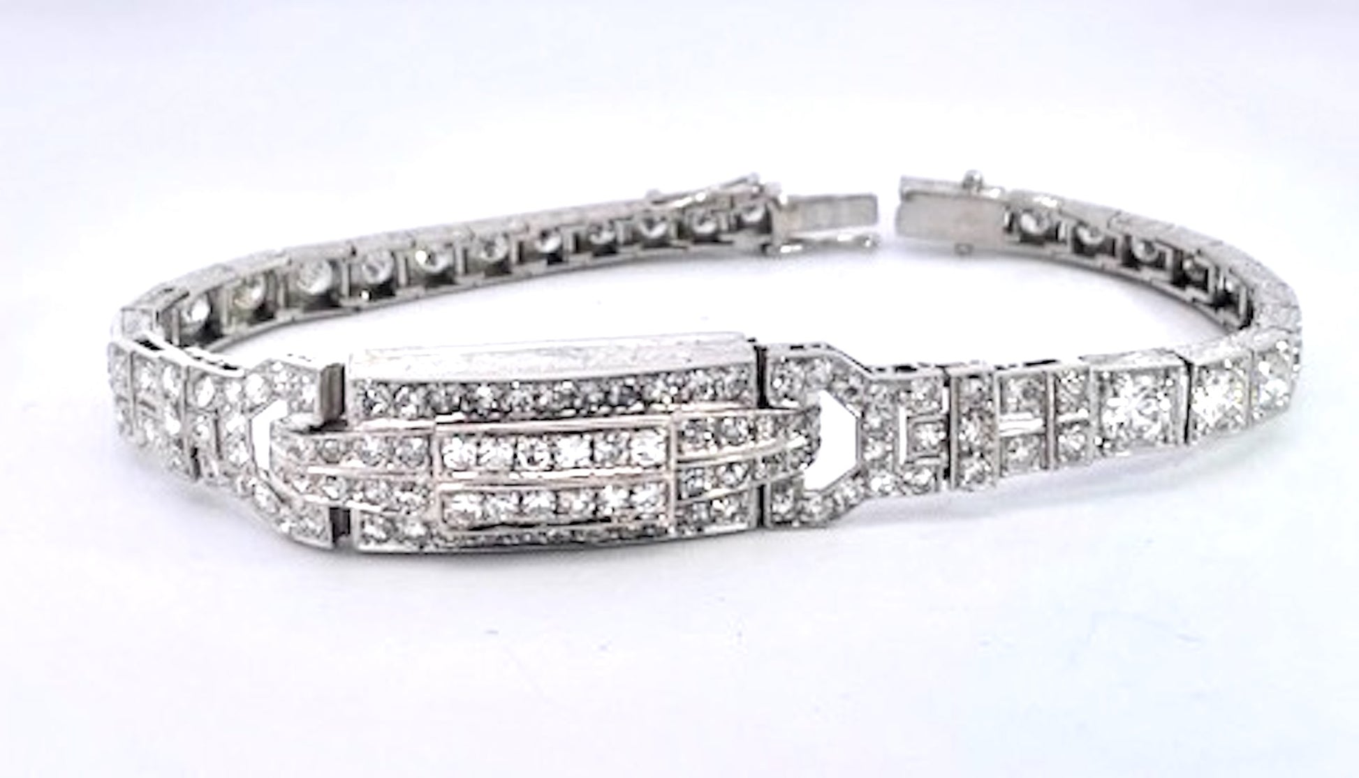 Art Deco Platinum 14K White Gold Diamond Bracelet